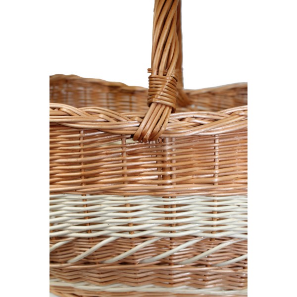 Ce panier en osier 2 tons (buff et blanc) est très pratique pour aller au marché, faire vos courses, aller en récolte ou en cueillette ou vous accompagner pour un pique-nique.