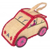 Sac à main design pirogue, en rabane coloré, anses et rabat en cuir végétal