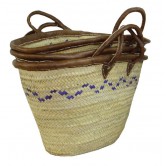 Couffin en palmier naturel avec des anses en cuir qui en font le tour