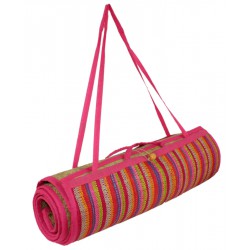 Cette natte se referme avec une perle en bois et se transporte facilement avec des anses courtes pour les mains ou longues pour l'épaule.