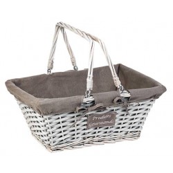 Dans ce panier rectangulaire, en osier et bois avec des anses mobiles, vous pourrez disposer des produits et créer votre panier garni.